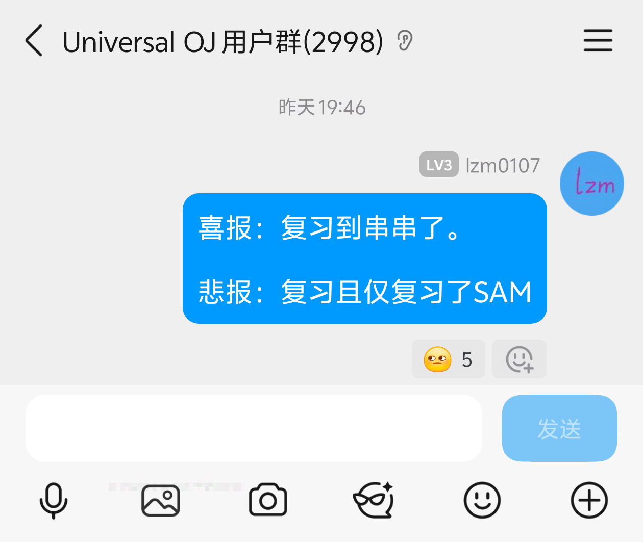 然后是单独参赛的决定,我已经忘了我当时说没说过了。但按照我那时写下的文字的说法,我向 @Austin__Griffin 表达过“要是不能组日新月异七队我就不打了”的意思。所以我觉得如果我找了别人组队,就证明那句只是一句用来情感绑架的谎言,进而证明我是一个可以随意说出这种谎言情感绑架别人的人。因此我不愿意和其他同学组队。至于为什么还要参赛,则是因为考虑到 CCPC 2024 时的体验,我认为“第二天(11.30)会错过本可以参加的 CCPC”几乎必然影响我在第一天的 NOIP 的发挥。